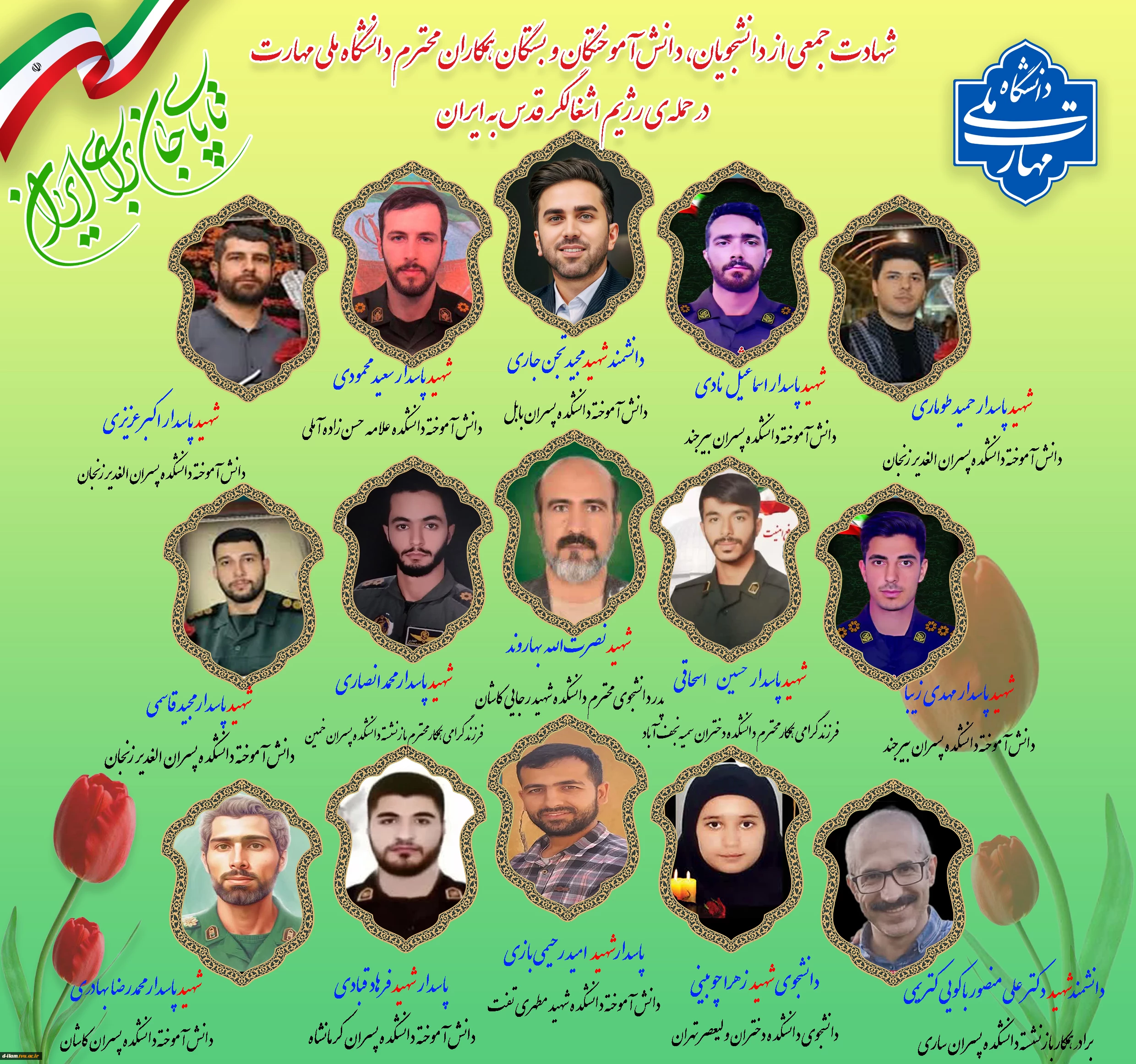 امتیاز دهید : پیام تسلیت دکتر زمانی در پی شهادت جمعی از دانشجویان و اعضا و وابستگان خانواده دانشگاه ملی مهارت 2 دوشنبه 9 تیر 1404 ساعت 11:42