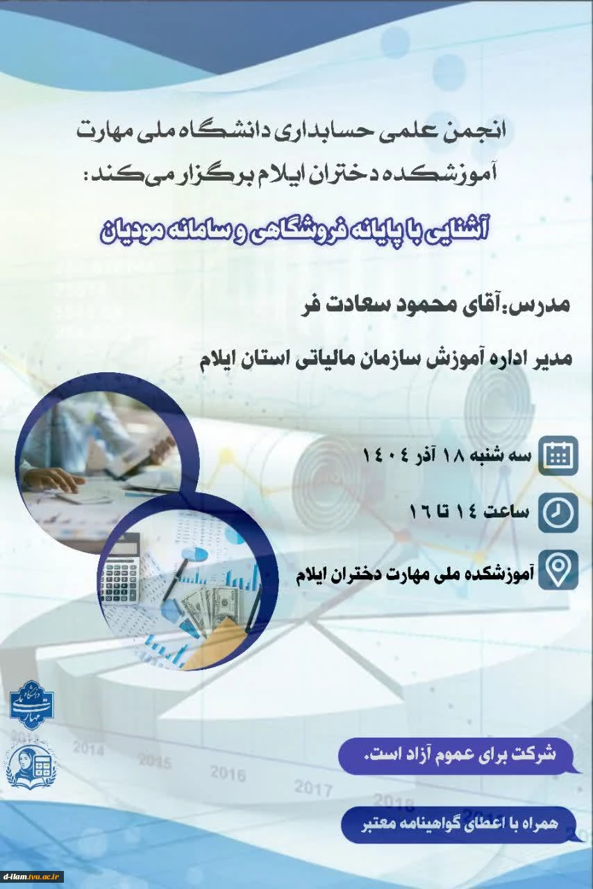 امتیاز دهید : انجمن علمی حسابداری دانشگاه ملی مهارت آموزشکده دختران ایلام برگزار میکند: 2 شنبه 22 آذر 1404 ساعت 8:55